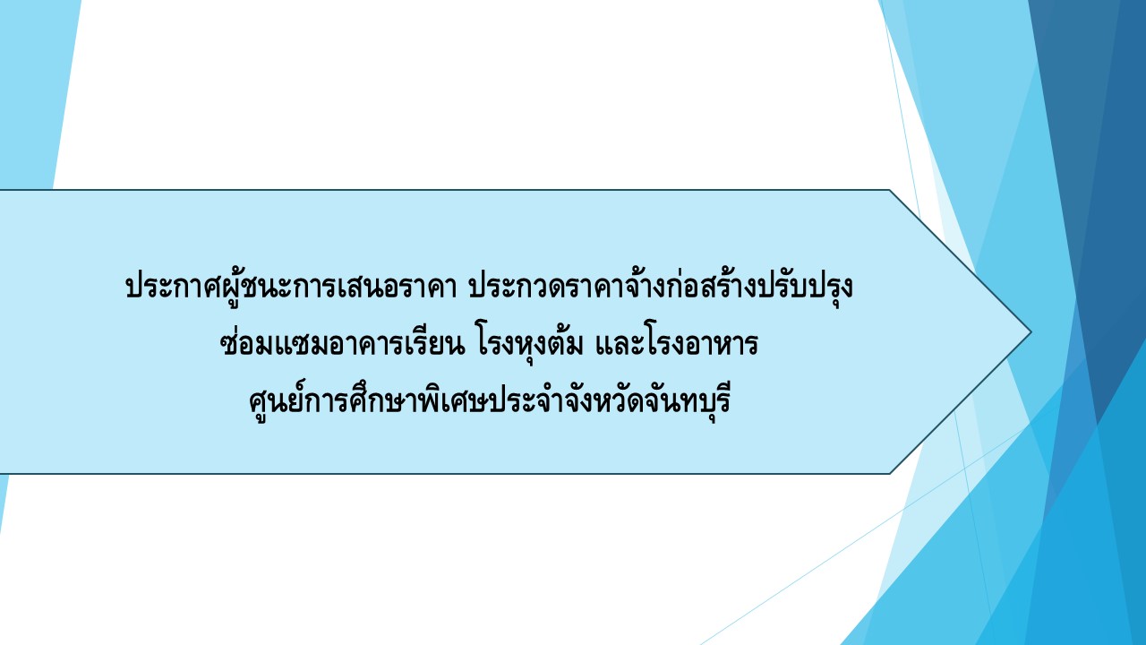ประกาศผู้ชนะการเสนอราคา ประกวดราคาจ้างก่อสร้างปรับปรุง ซ่อมแซมอาคารเรียน โรงหุงต้ม และโรงอาหาร ศูนย์การศึกษาพิเศษประจำจังหวัดจันทบุรี
