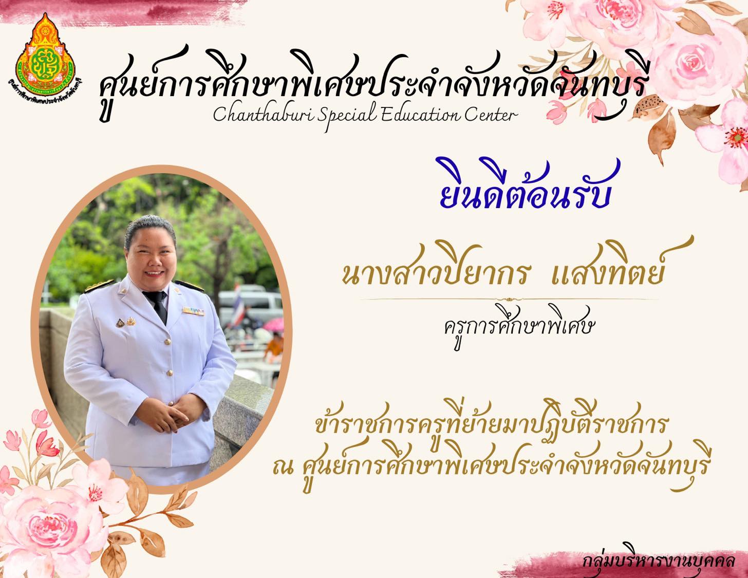 ยินดีต้อนรับ ข้าราชการครูที่ย้ายมาปฏิบัติราชการ นางสาวปิยกร แสงทิตย์ ตำแหน่ง ครู
