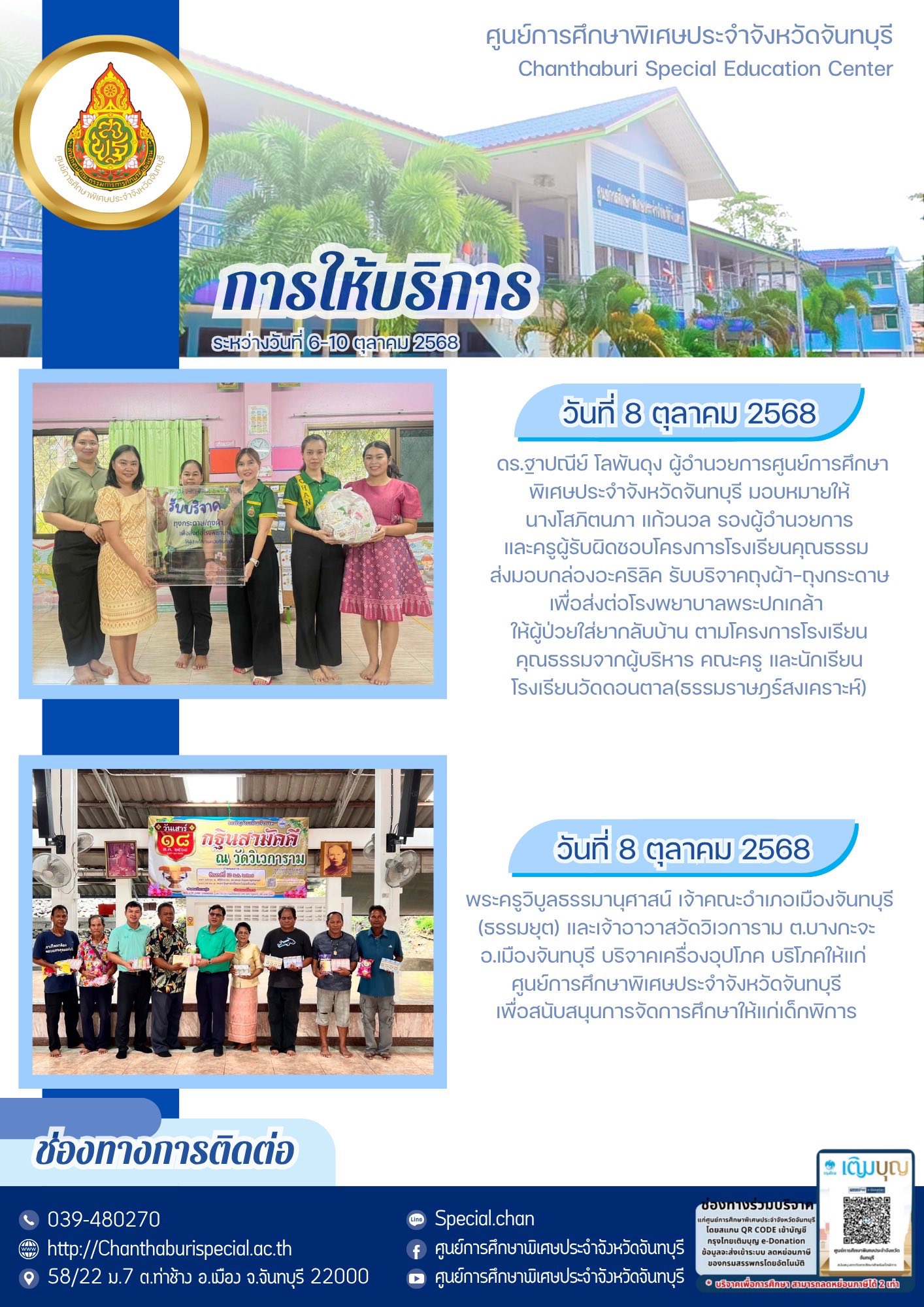 การให้บริการของศูนย์การศึกษาพิเศษประจำจังหวัดจันทบุรี กิจกรรมประจำสัปดาห์ ระหว่างวันที่ 6-10 มกราคม 2568