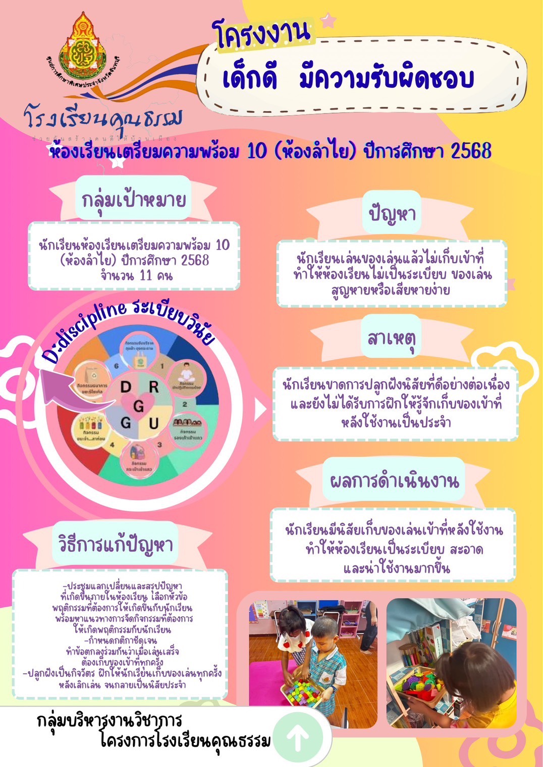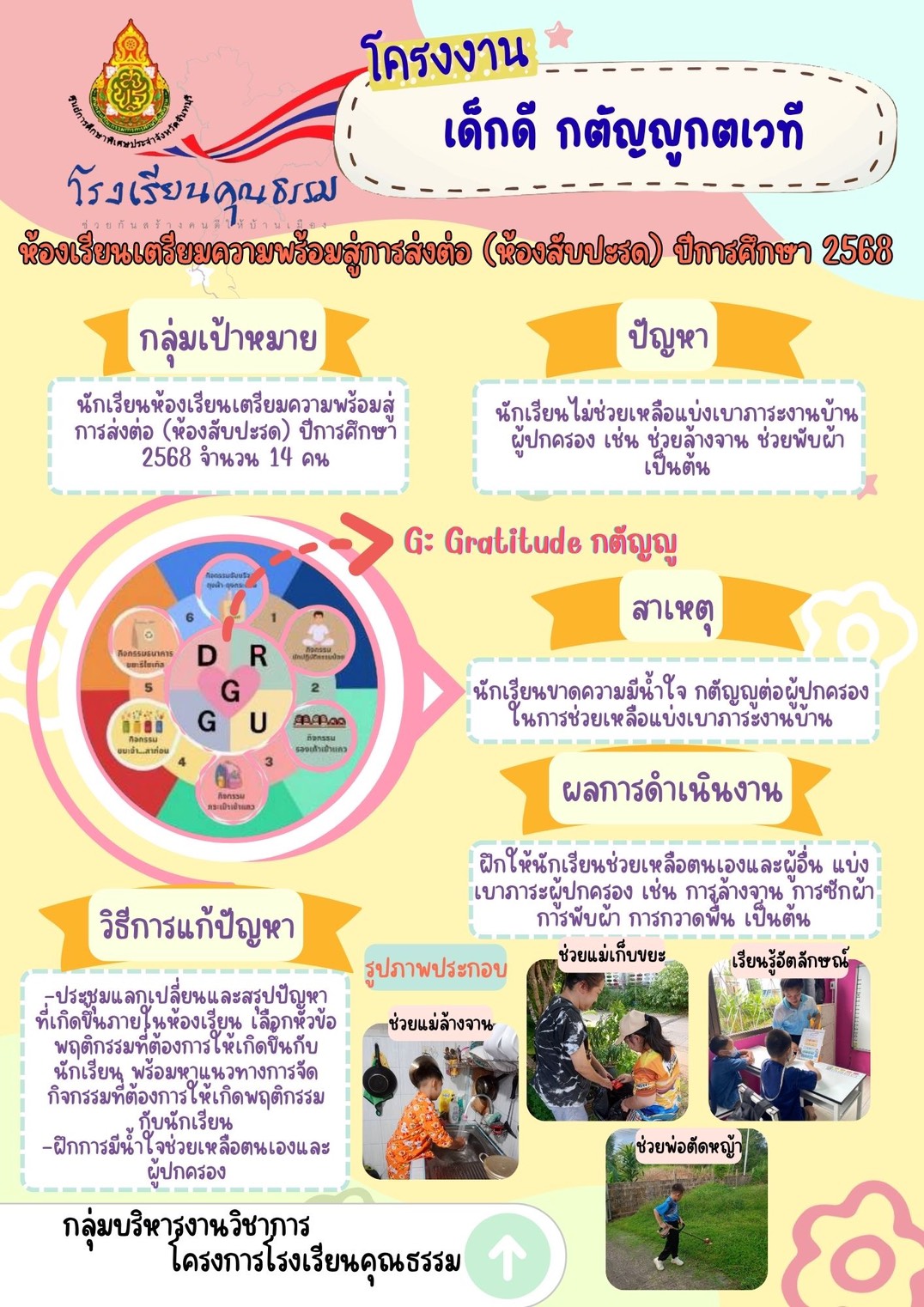 โครงการโรงเรียนคุณธรรม โครงงานโรงเรียนคุณธรรมระดับชั้นเรียน ภาคเรียนที่1/2568 ศูนย์การศึกษาพิเศษประจ