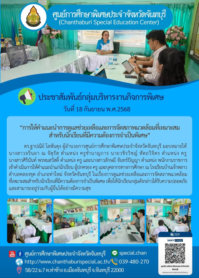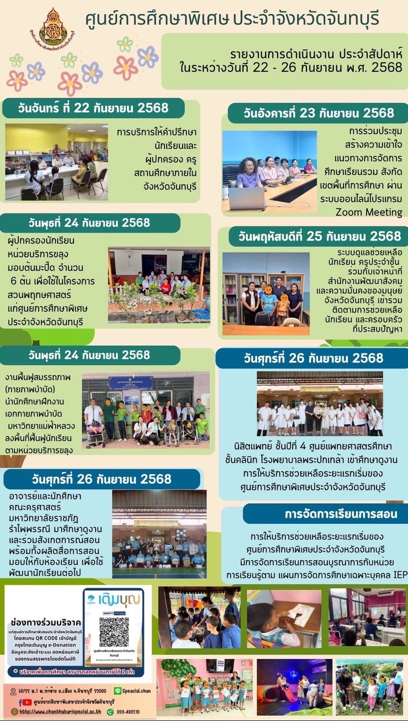 ศูนย์การศึกษาพิเศษประจำจังหวัดจันทบุรี ยินดีต้อนรับ