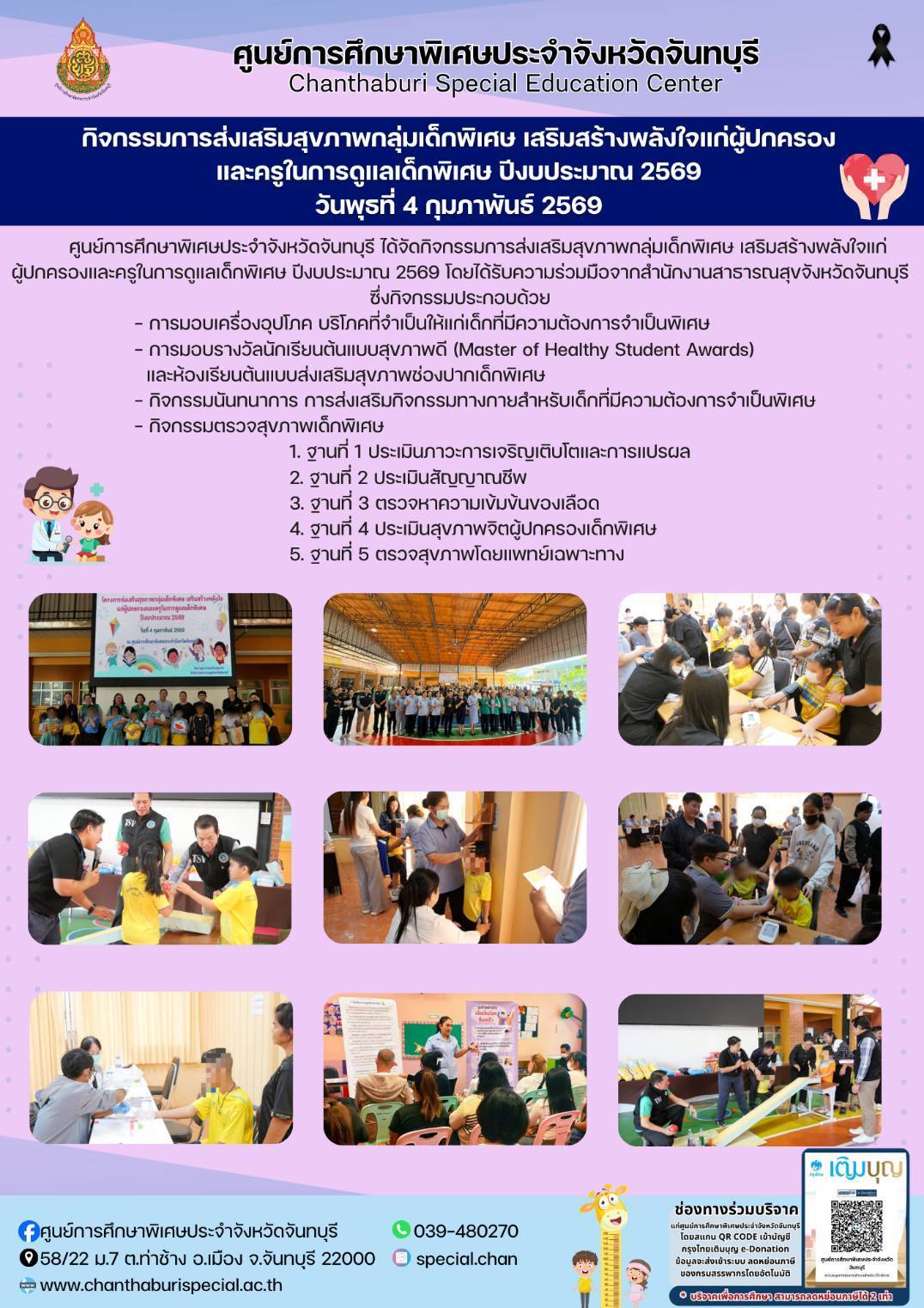 การให้บริการของศูนย์การศึกษาพิเศษประจำจังหวัดจันทบุรี (หน่วยบริการประจำอำเภอ) กิจกรรมประจำสัปดาห์ ระหว่างวันที่ 6-10 มกราคม 2568