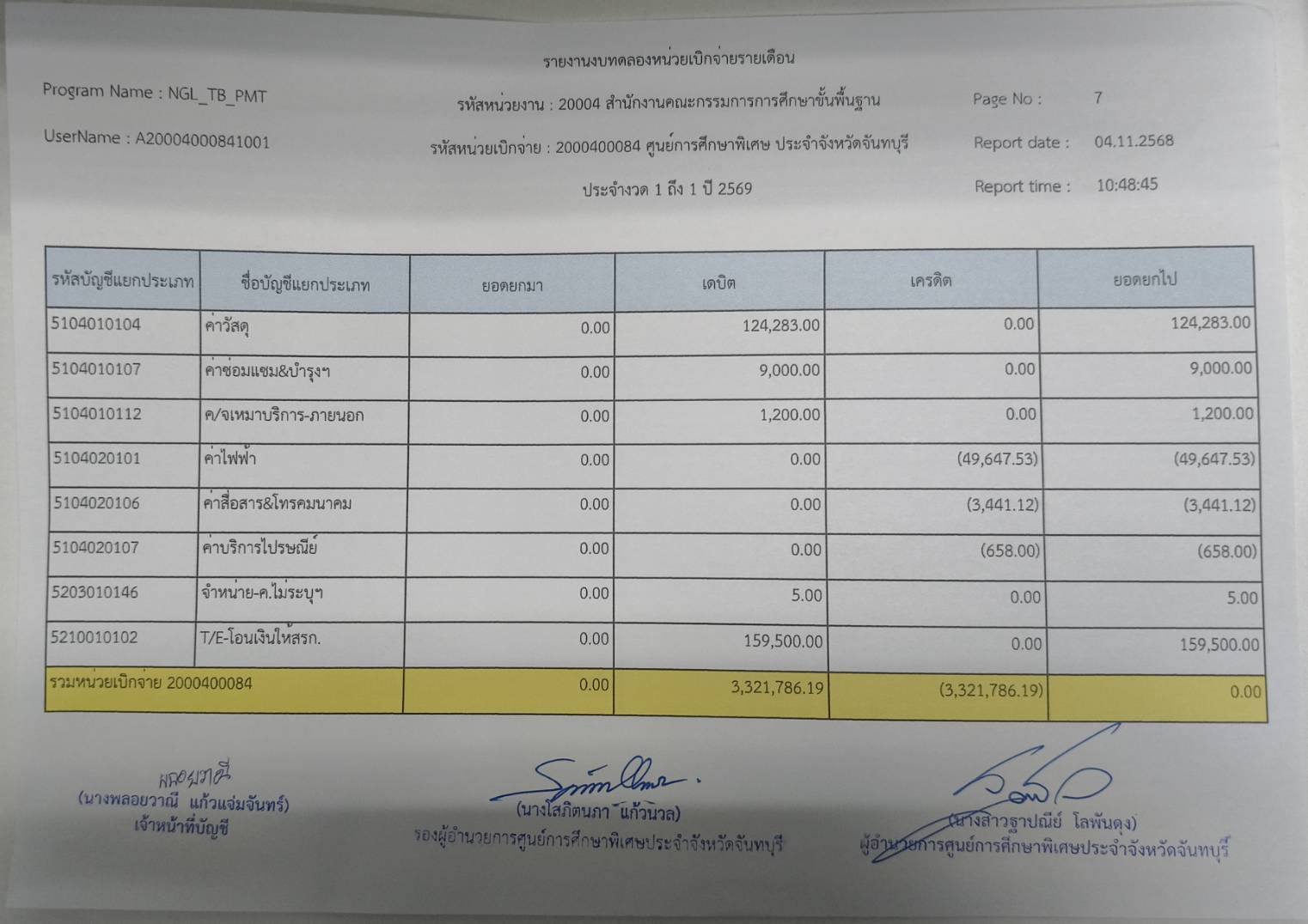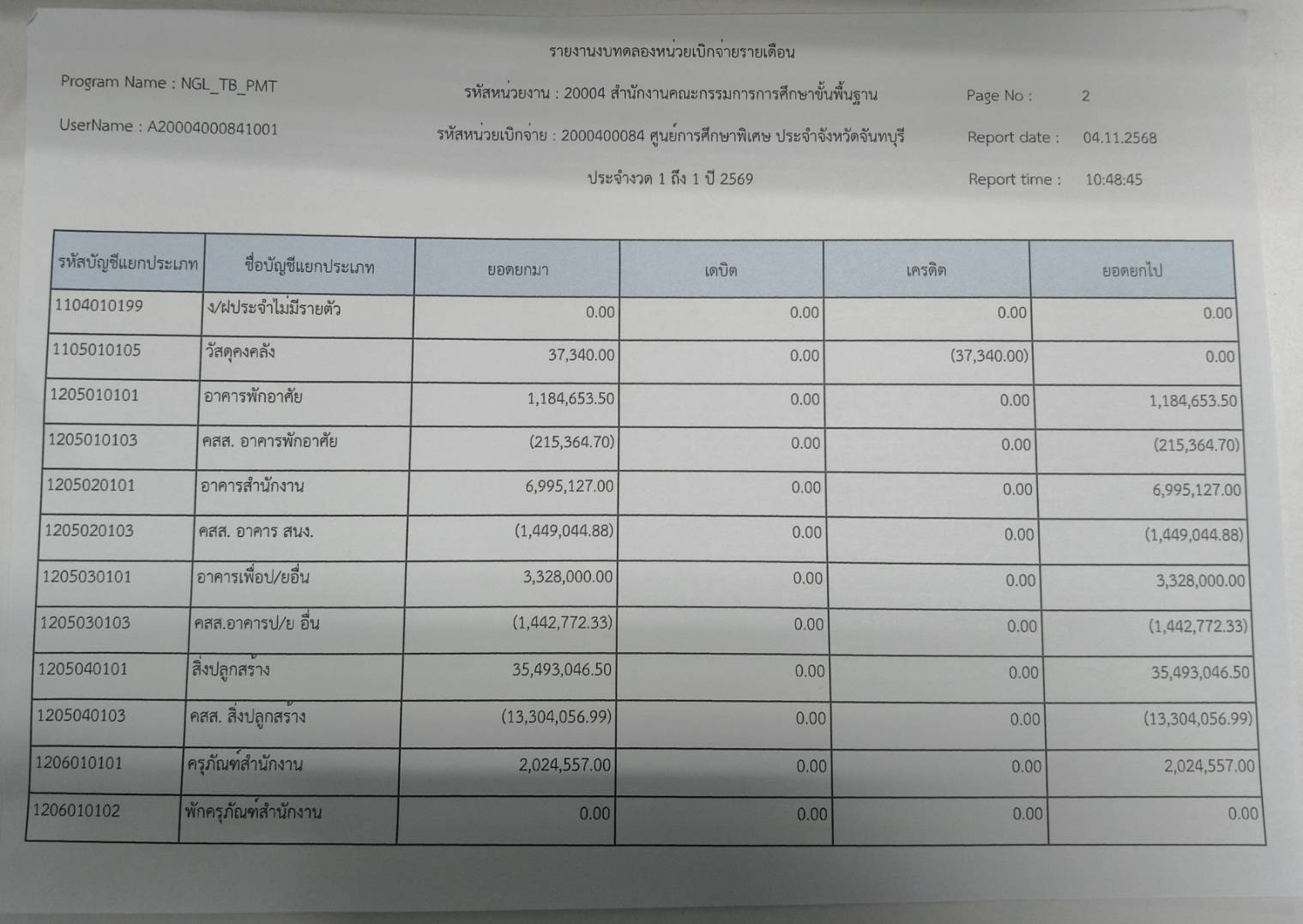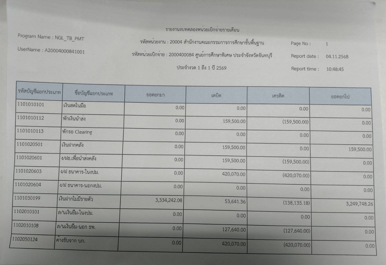 รายงานงบทดลองประจำเดือน ตุลาคม2568