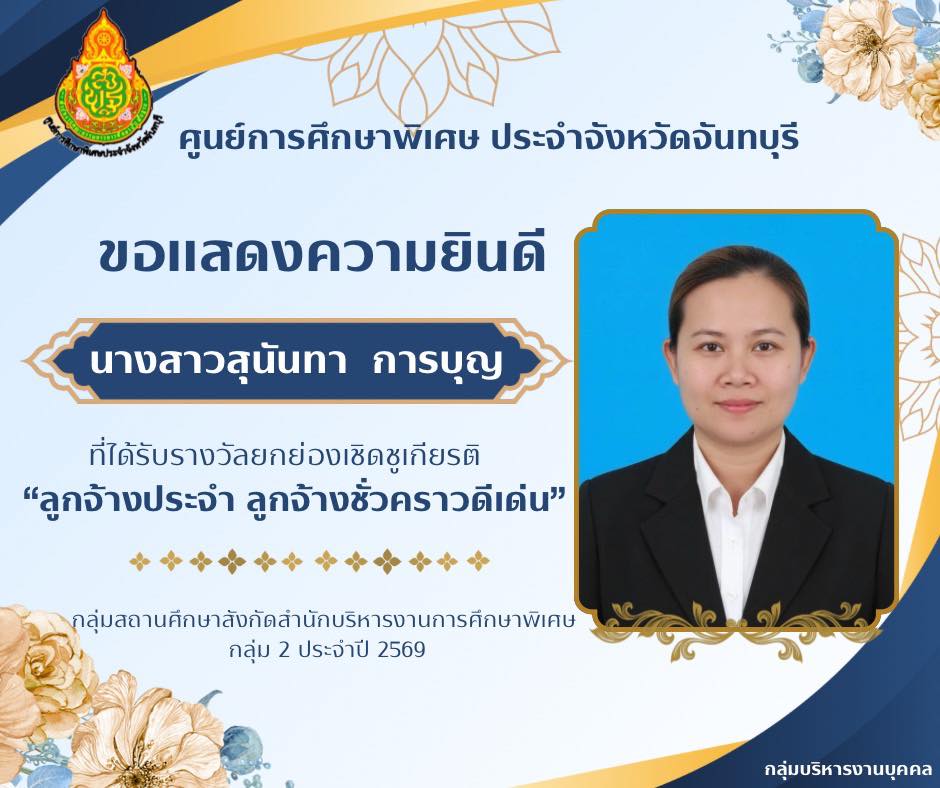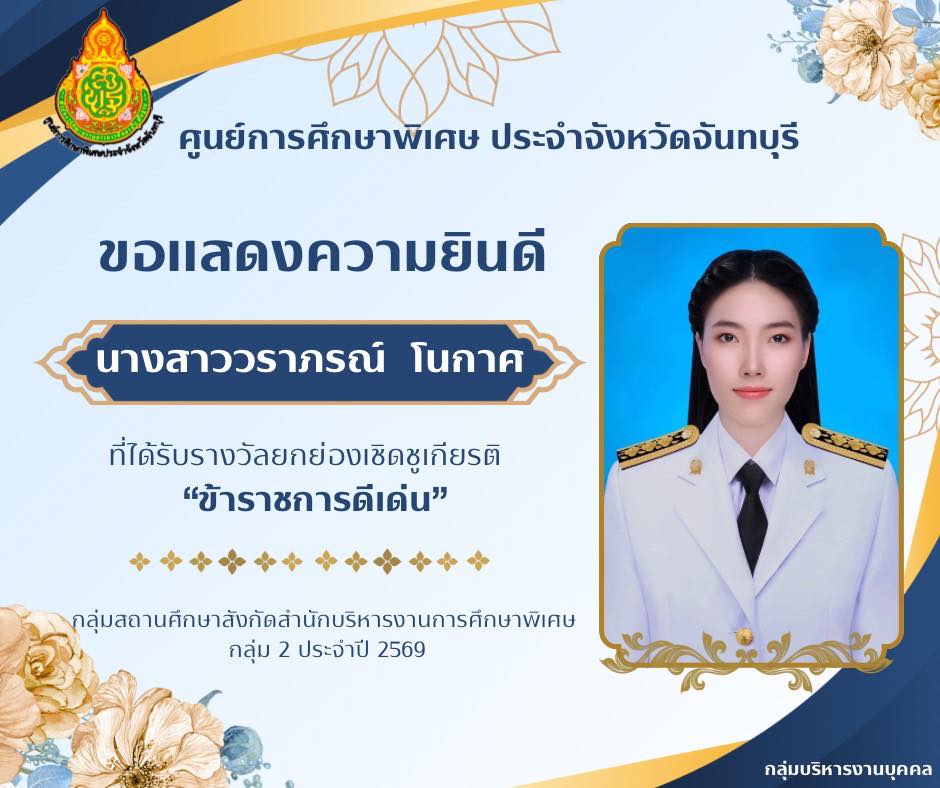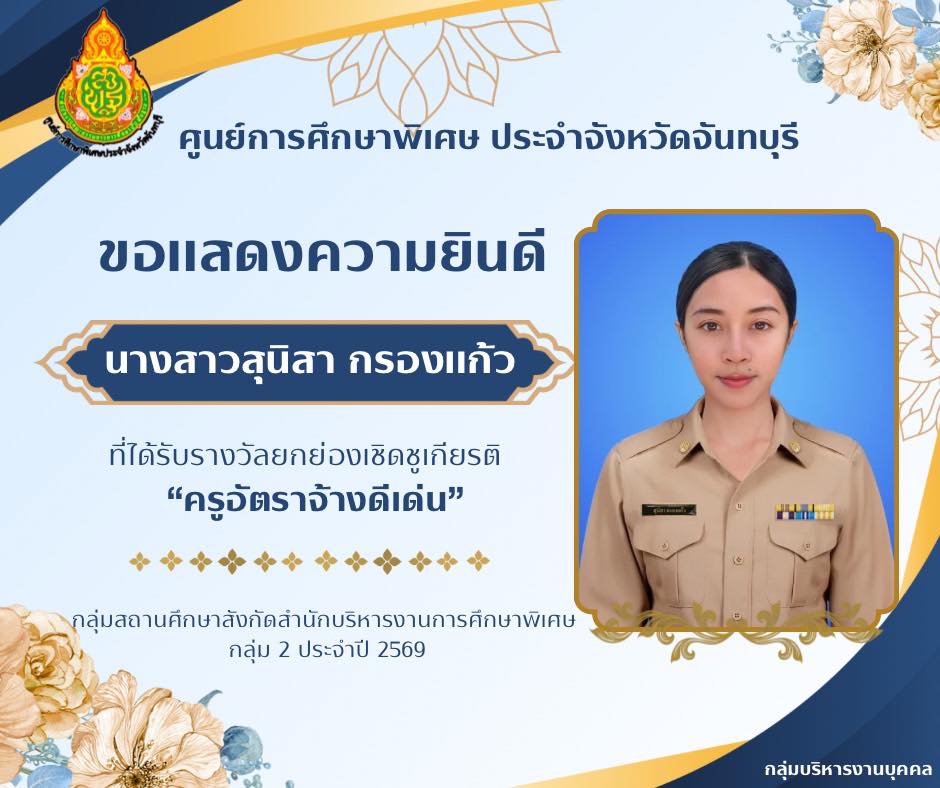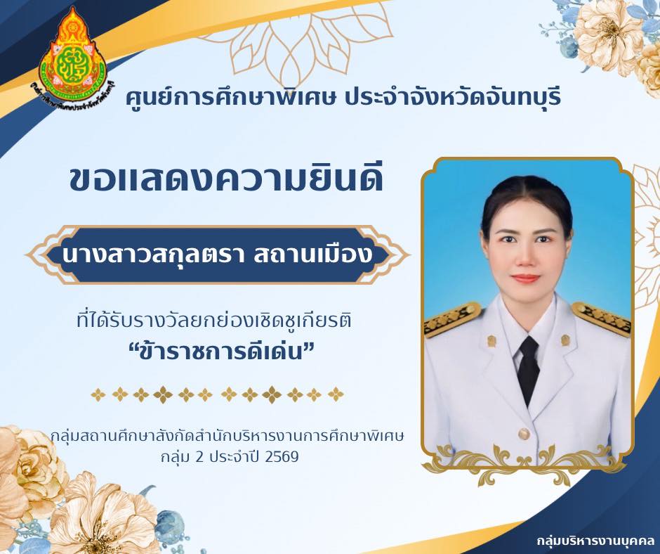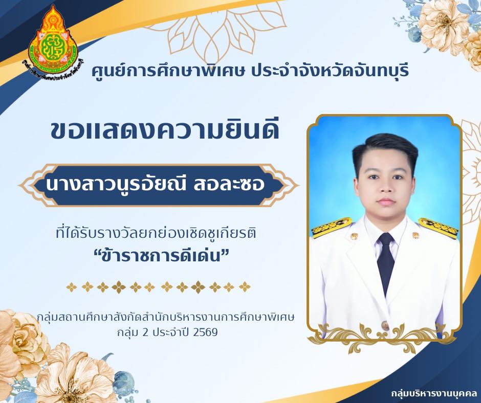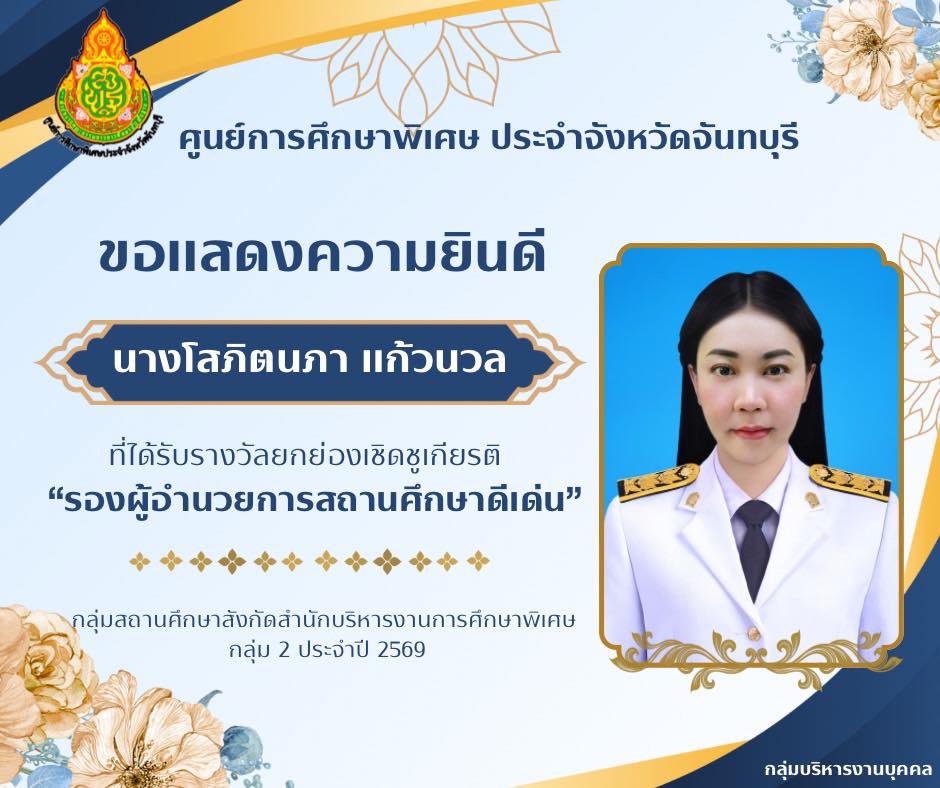ขอแสดงความยินดีกับผู้บริหาร ข้าราชการครูและบุคลากรทางการศึกษา ที่ได้รับการคัดเลือกยกย่องเชิดชูเกียรติผู้มีผลงานดีเด่น