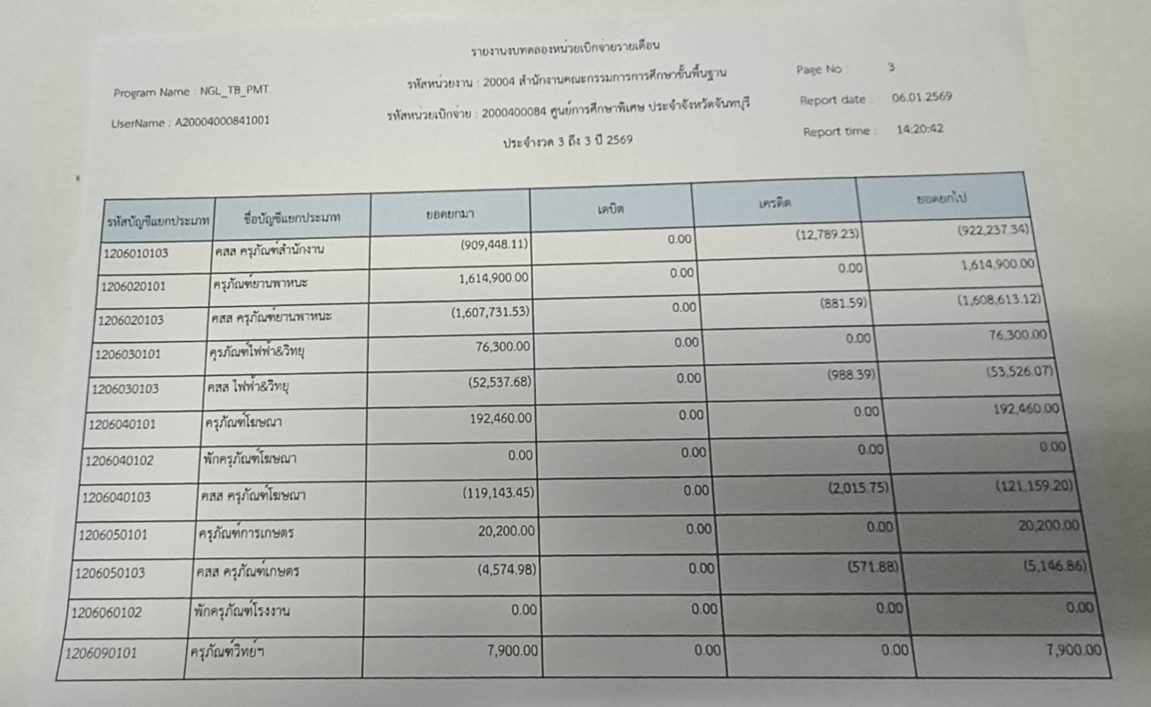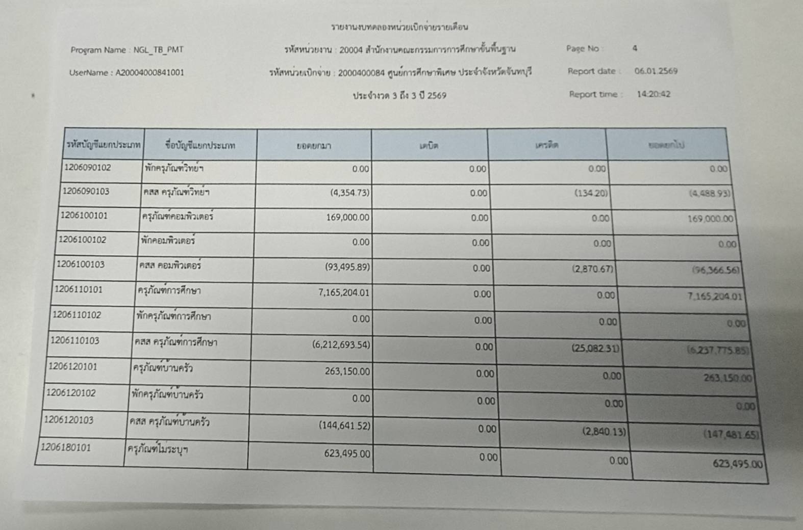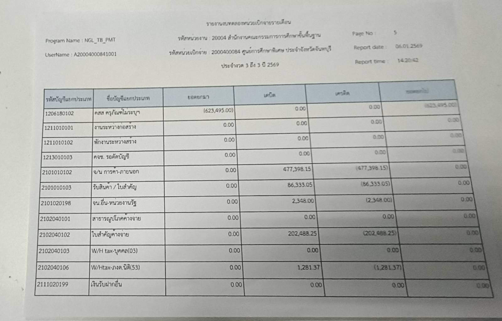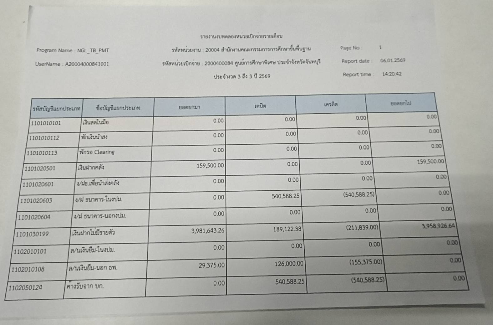 รายงานงบทดลองประจำเดือน ธันวาคม 2568