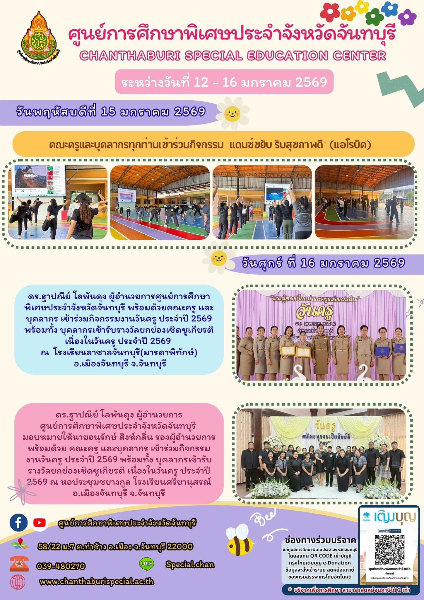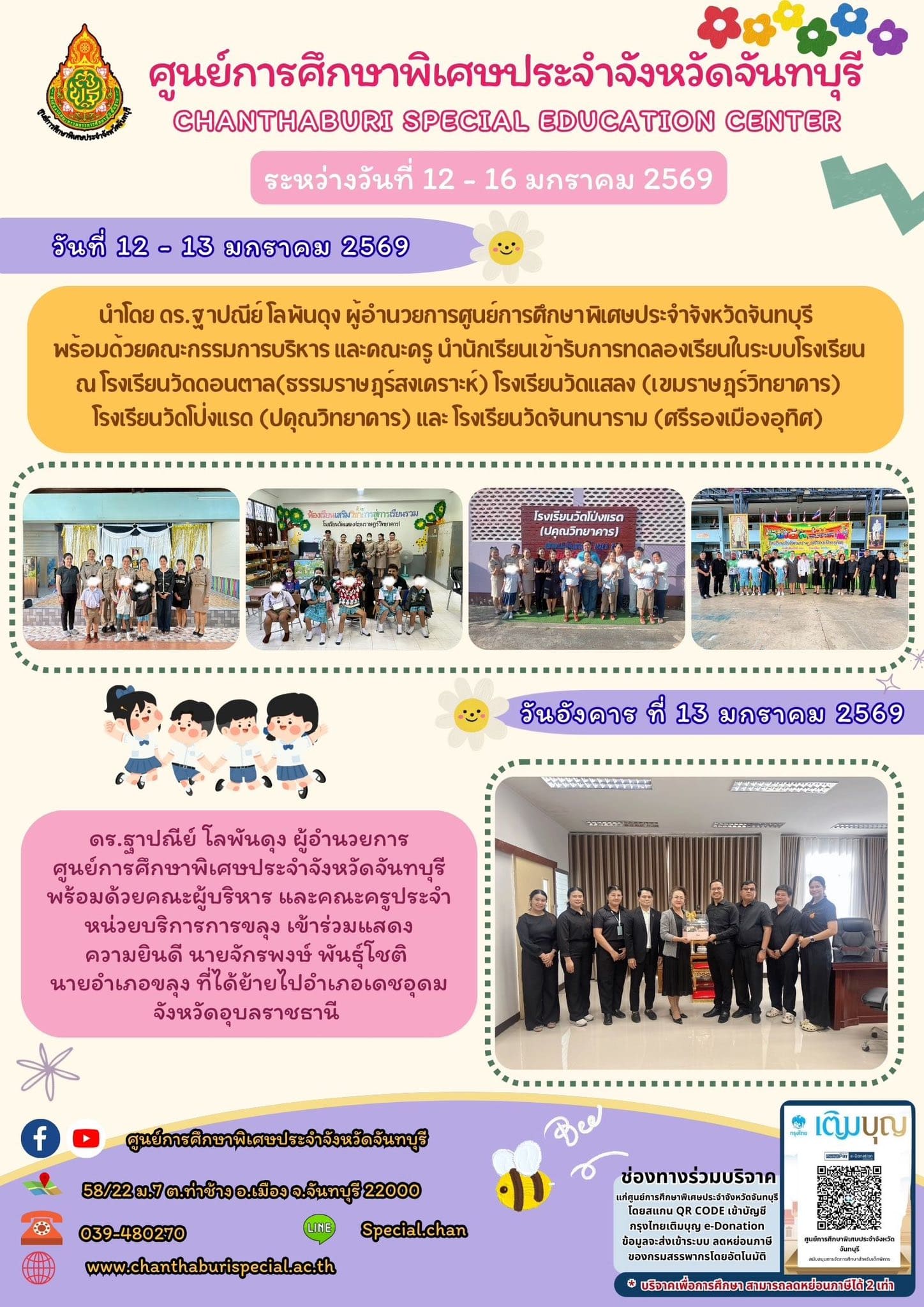 กิจกรรมการให้บริการของศูนย์การศึกษาพิเศษประจำจังหวัดจันทบุรี ระหว่างวันที่ 12 - 16 มกราคม 2569