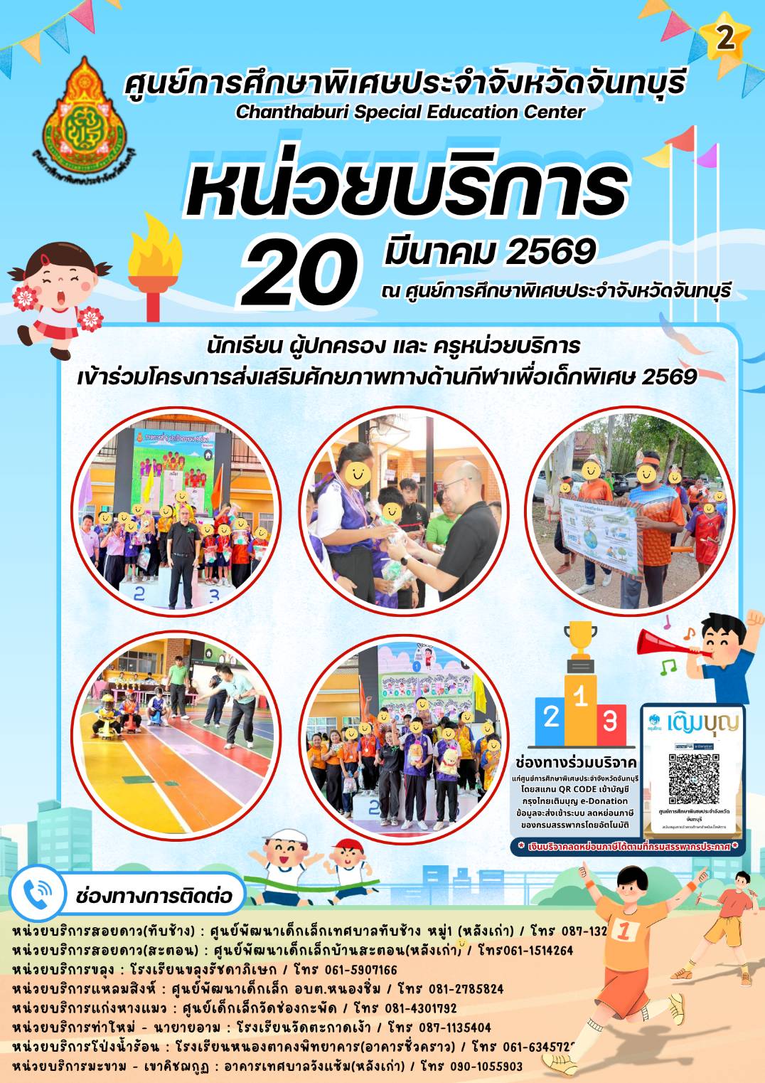 กิจกรรมการจัดการเรียนการสอน (หน่วยบริการ) ระหว่างวันที่ 16 - 20 มีนาคม พ.ศ.2569 ของศูนย์การศึกษาพิเศษประจำจังหวัดจันทบุรี