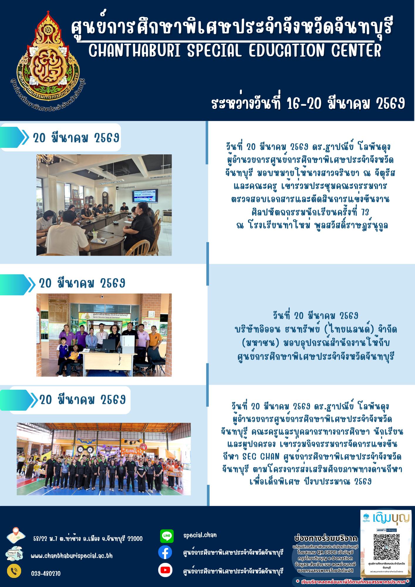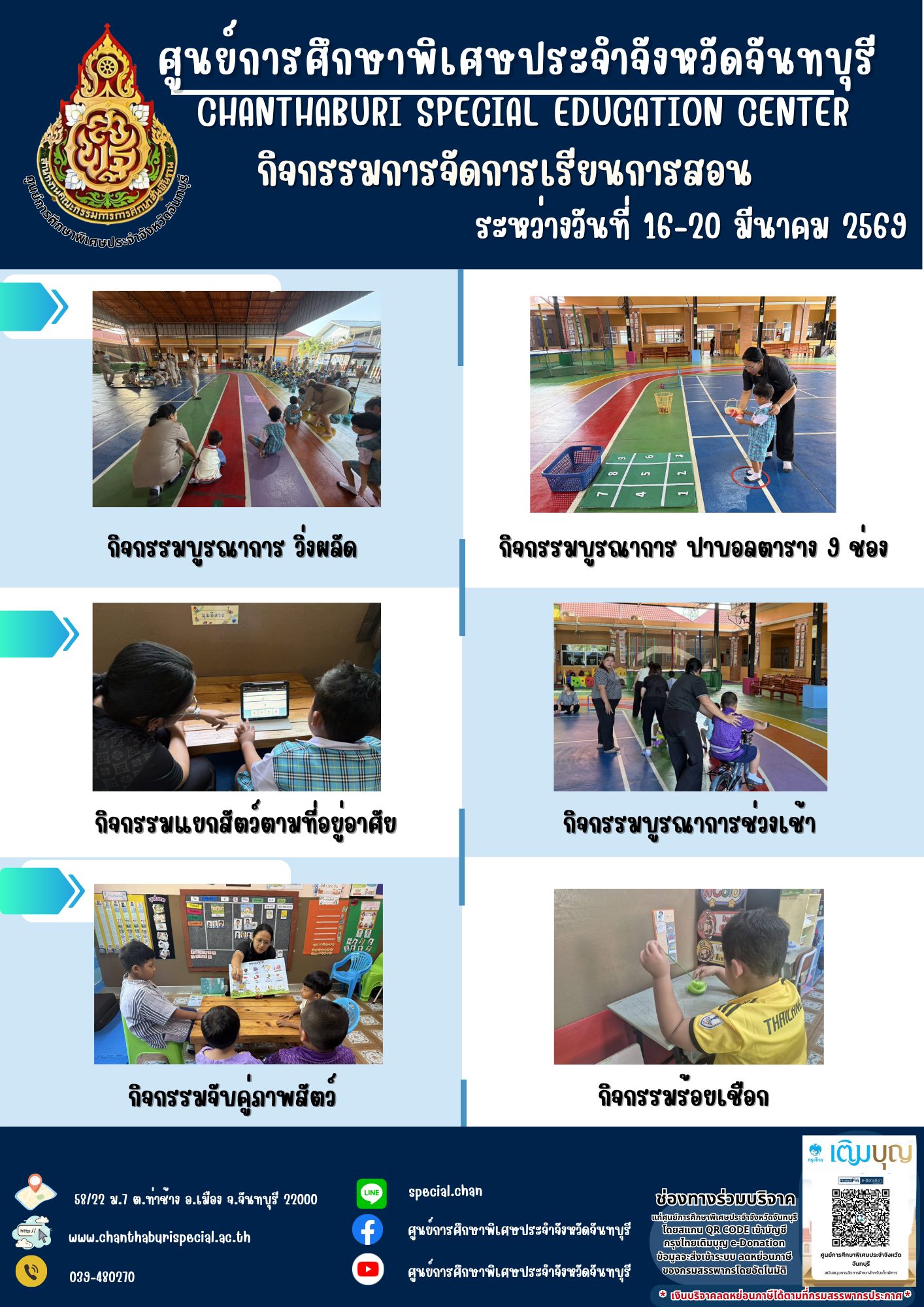 กิจกรรมการจัดการเรียนการสอนระหว่างวันที่ 16 - 20 มีนาคม พ.ศ.2569 ของศูนย์การศึกษาพิเศษประจำจังหวัดจันทบุรี