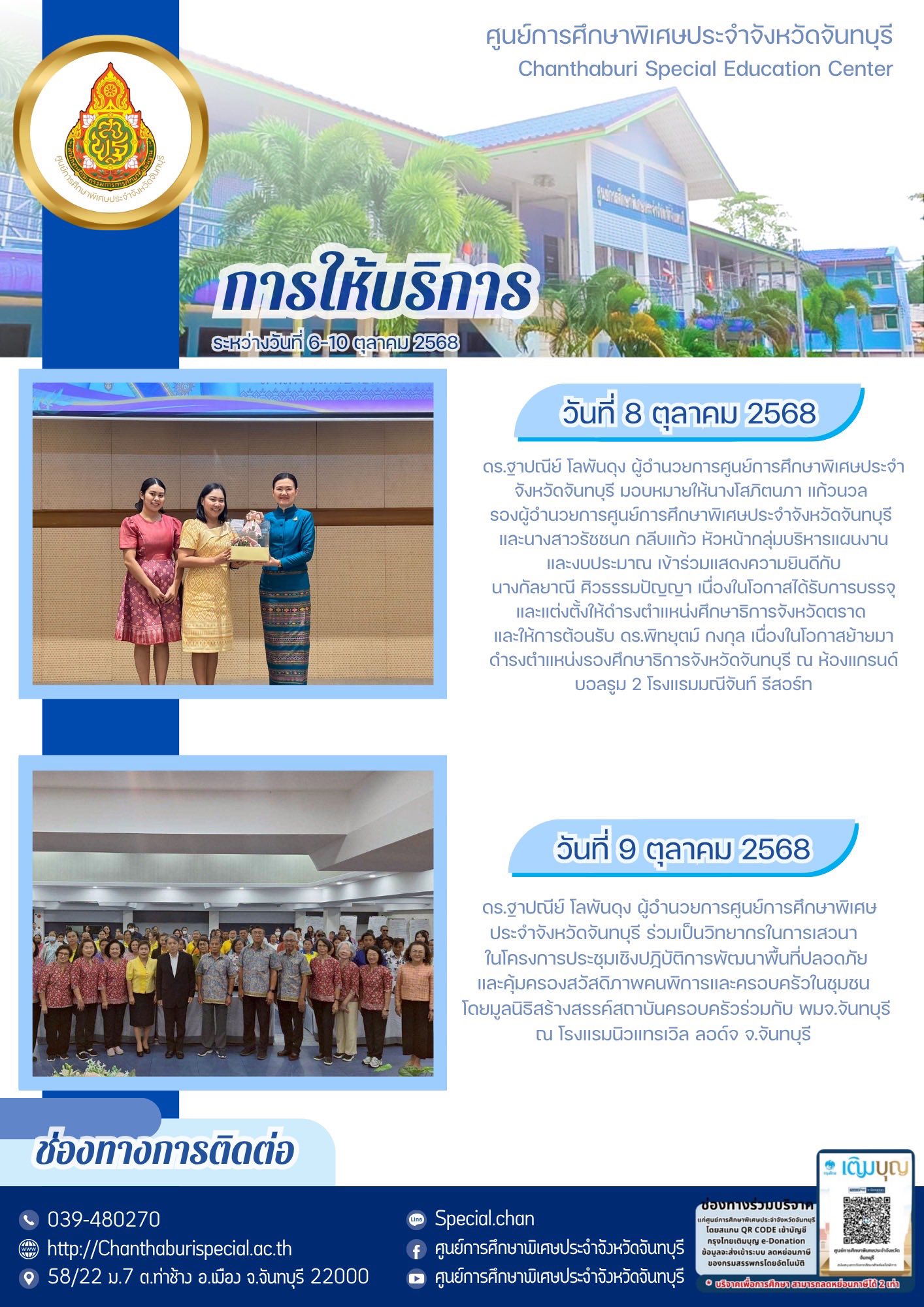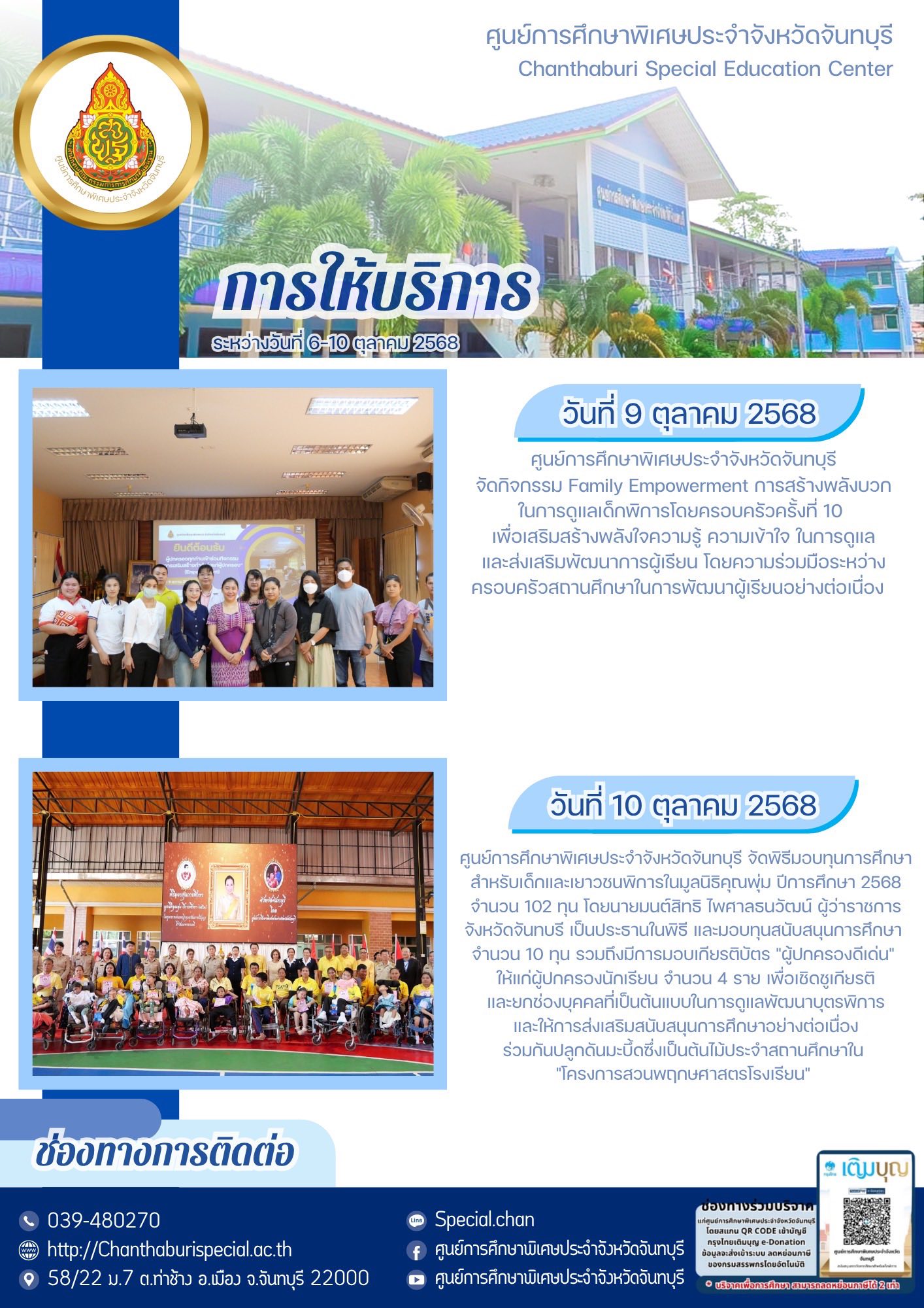กิจกรรมการให้บริการประจำสัปดาห์ ระหว่างวันที่ 6-10 ตุลาคม 2568