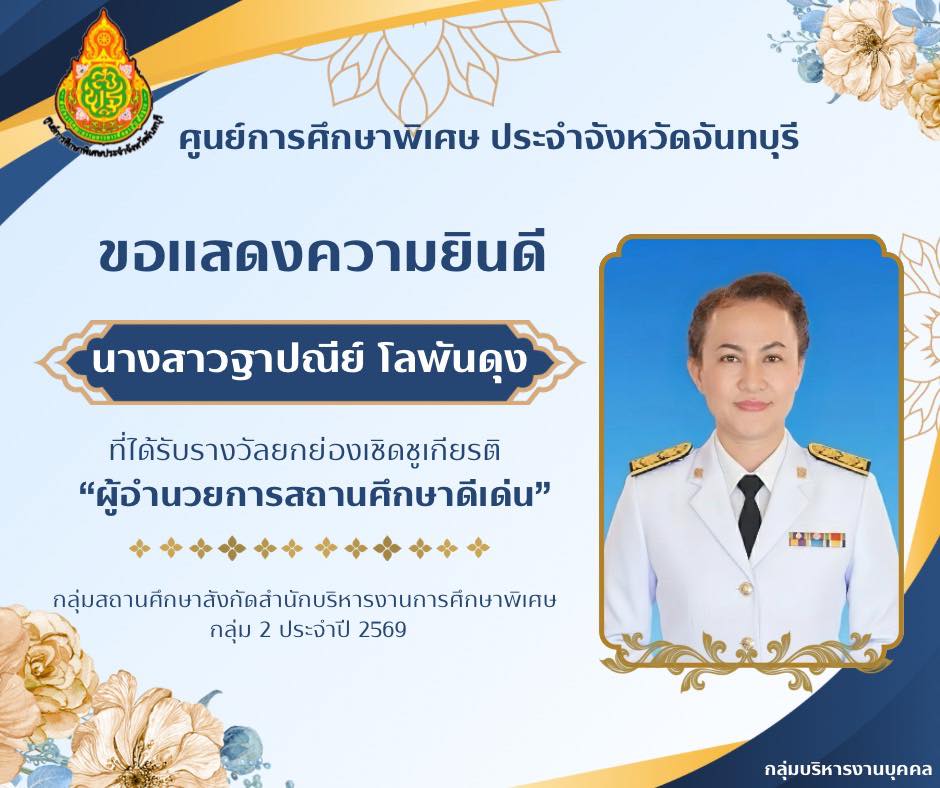 ขอแสดงความยินดีและยินดีต้อนรับ นายอนุรักษ์ สิงห์กลิ่น รองผู้อำนวยการศูนย์การศึกษาพิเศษประจำจังหวัดจันทบุรี