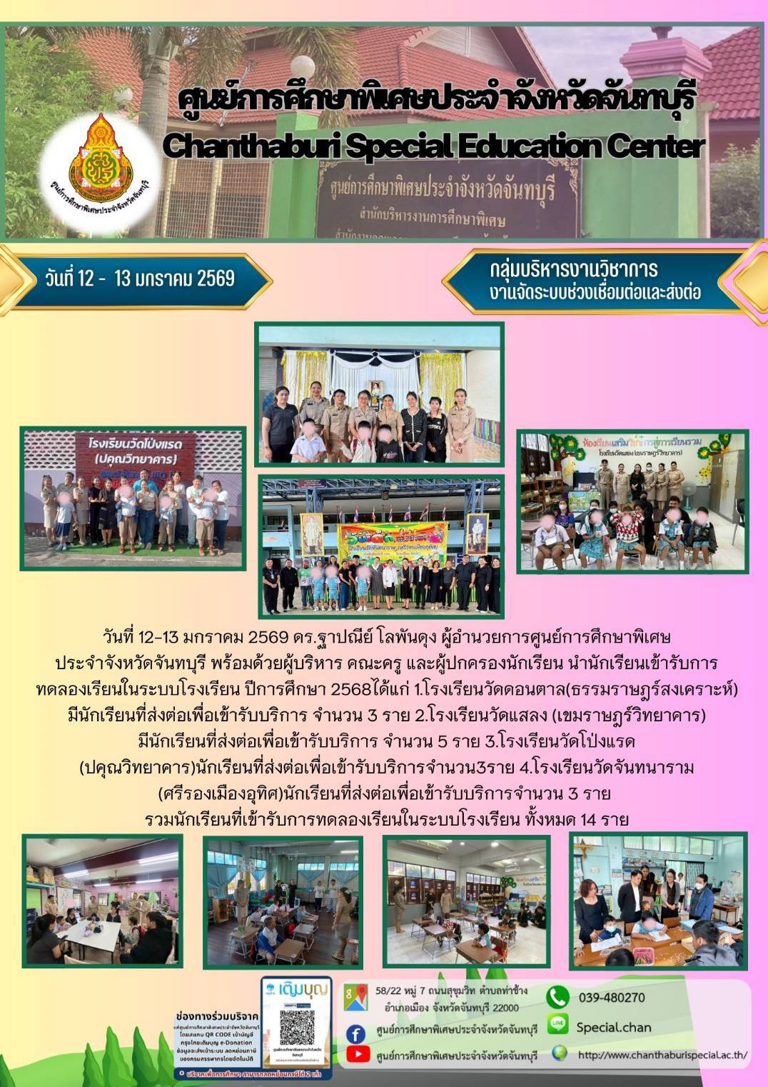 กิจกรรมการให้บริการของศูนย์การศึกษาพิเศษประจำจังหวัดจันทบุรี ระหว่างวันที่ 12 - 16 มกราคม 2569