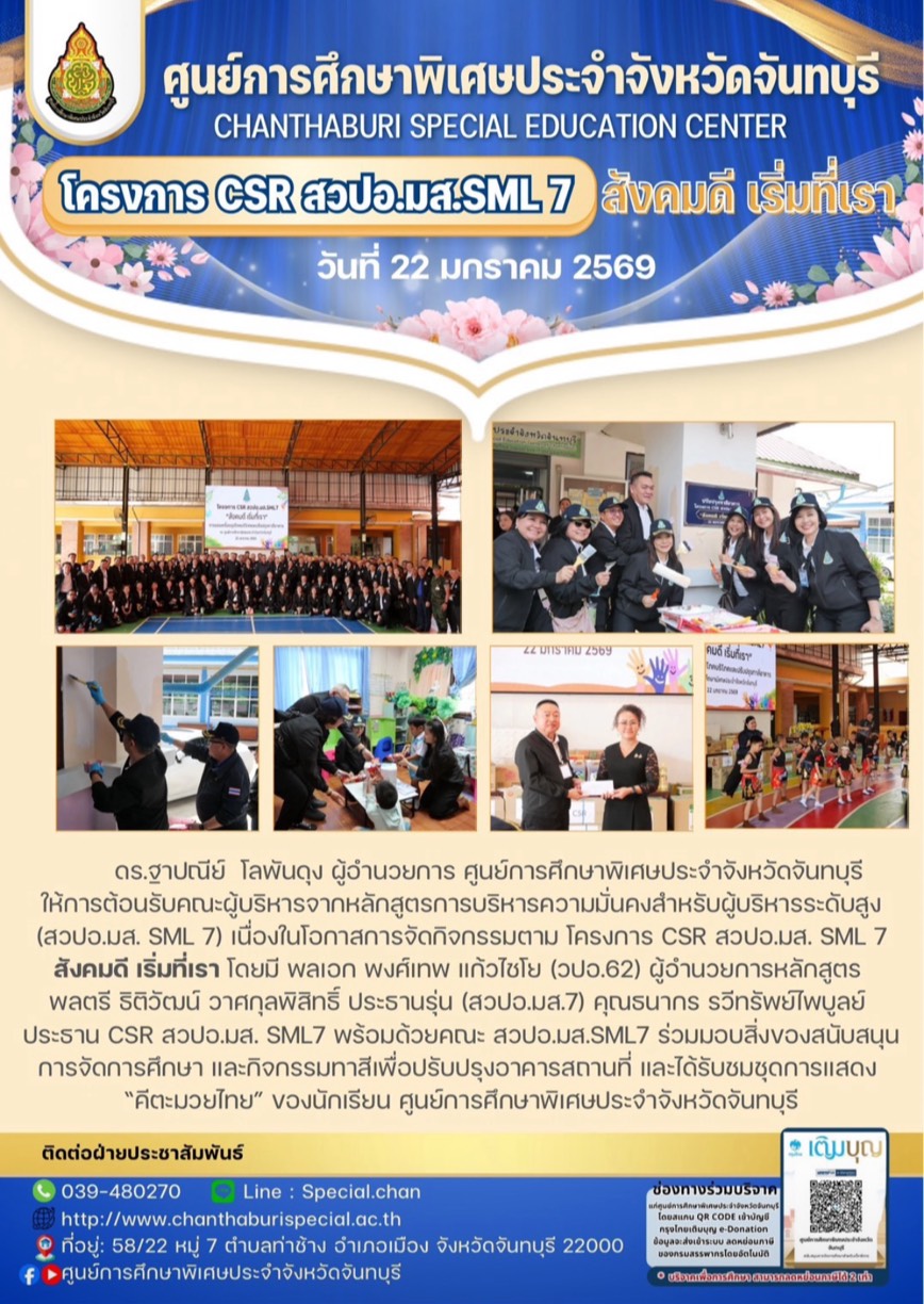 กิจกรรมการเรียนการสอนของศูนย์การศึกษาพิเศษประจำจังหวัดจันทบุรี ระหว่างวันที่ 5 -9 มกราคม พ.ศ.2569