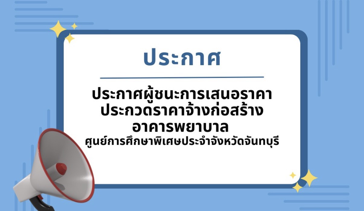 ประกาศผู้ชนะการเสนอราคา ประกวดราคาจ้างก่อสร้างอาคารพยาบาล ศูนย์การศึกษาพิเศษประจำจังหวัดจันทบุรี