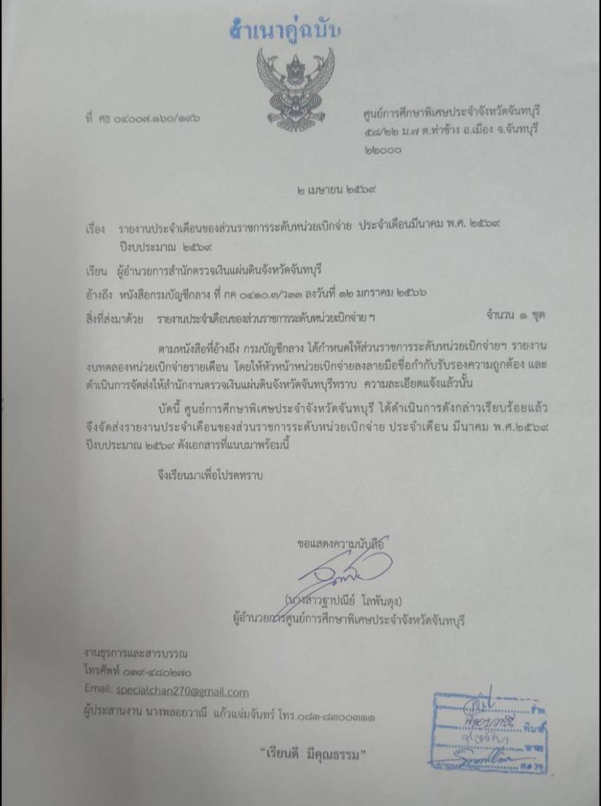 รายงานงบทดลองประจำเดือนมีนาคม 2569