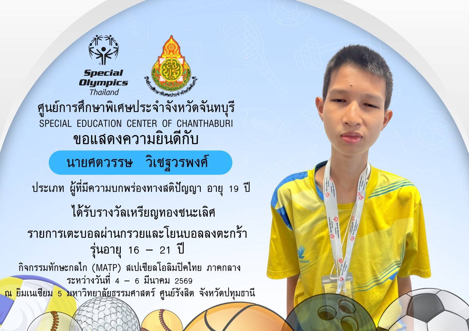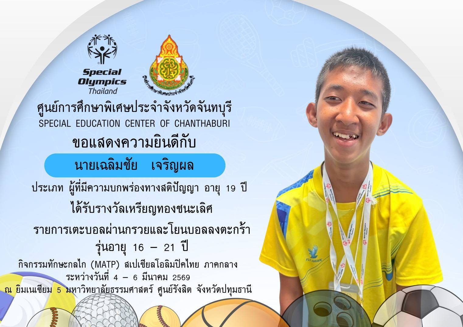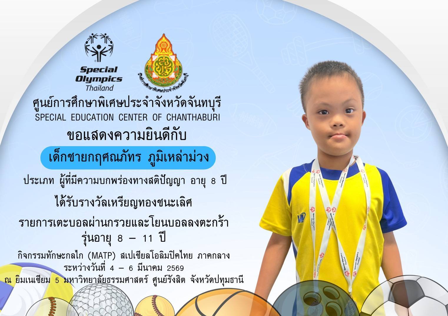 ขอแสดงความยินดีกับนักเรียนและคณะครูที่เข้าร่วมการแข่งขันทักษะกลไก (MATP) สเปเชียลโอลิมปิค