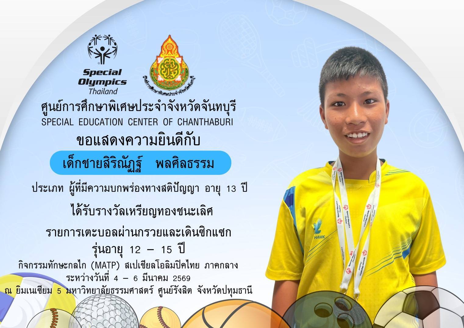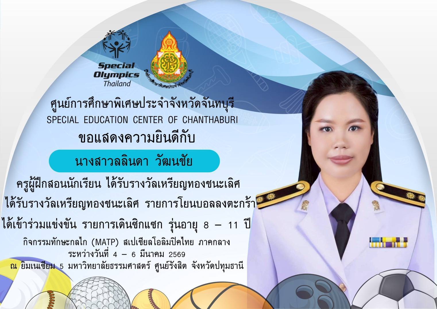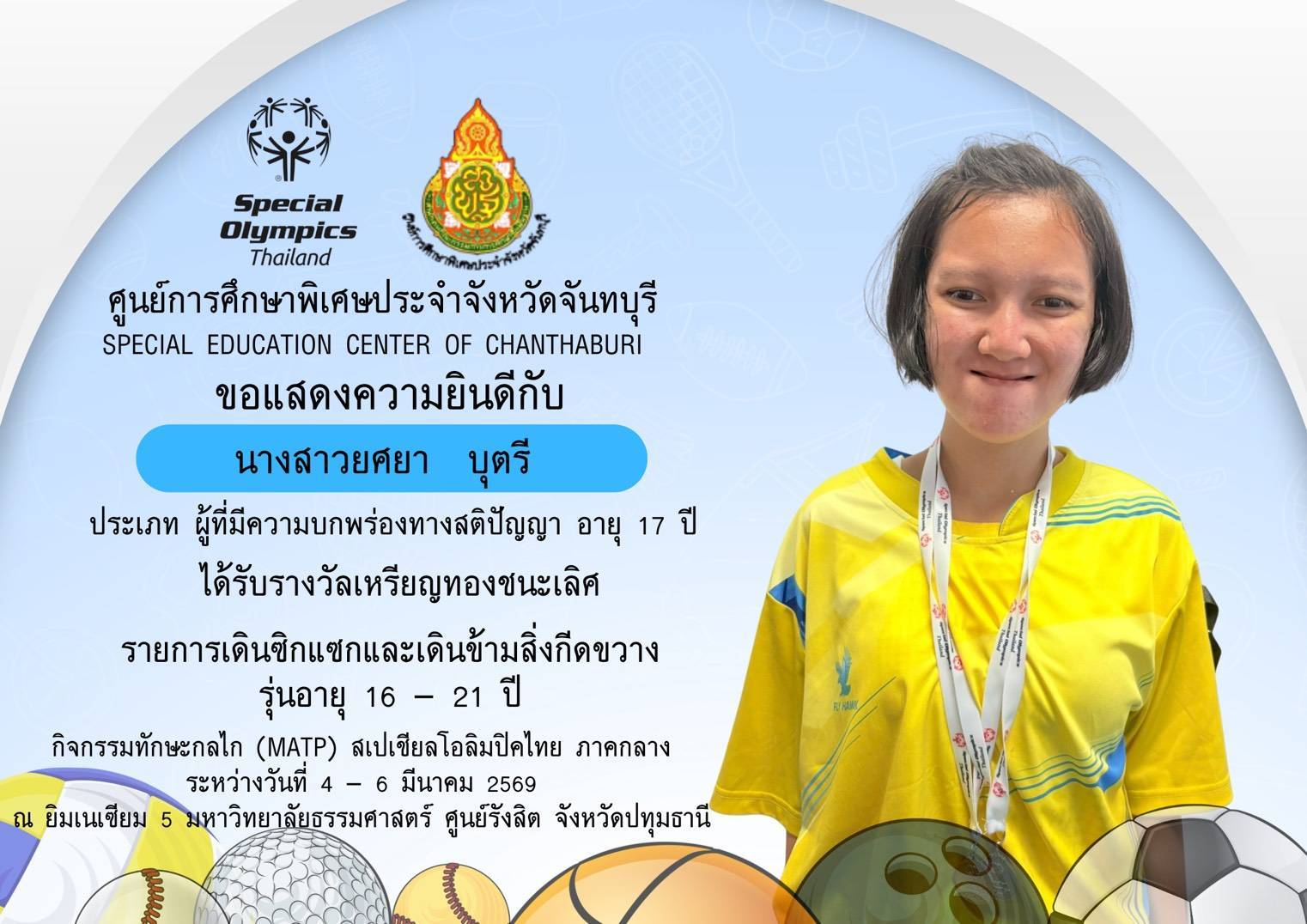 ขอแสดงความยินดีกับนักเรียนและคณะครูที่เข้าร่วมการแข่งขันทักษะกลไก (MATP) สเปเชียลโอลิมปิค